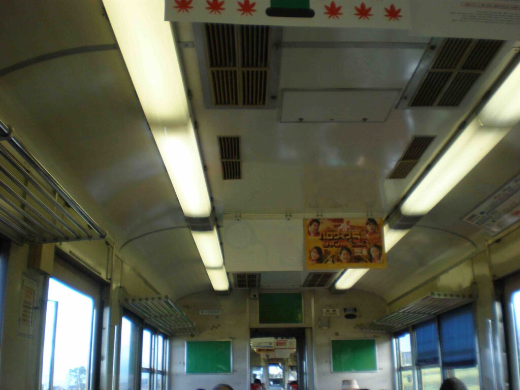 モケットシートもくたびれてきて、蛍光灯カバーやロールカーテンの随所に古さが目立ちます・・。ちなみに転換クロスシートです。