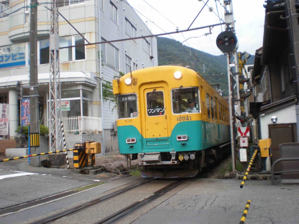 宇奈月温泉街をさっそうと?すり抜けていきます!