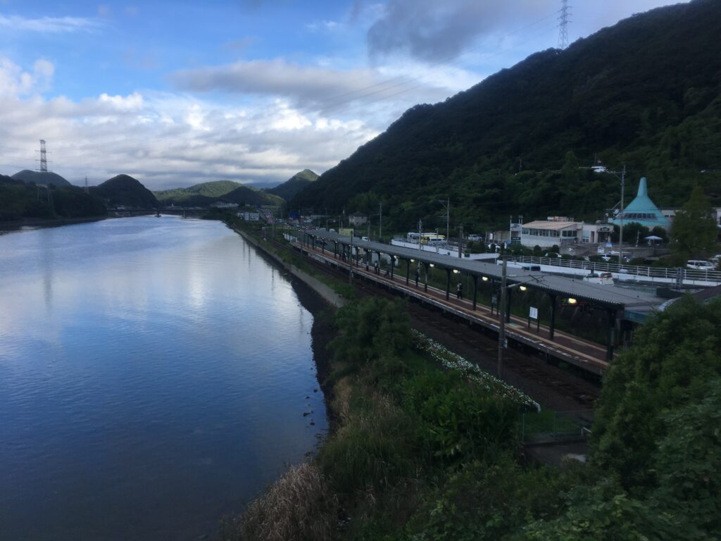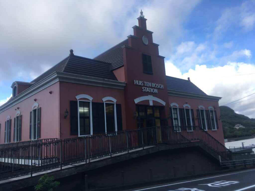 ハウステンボス側からみた早岐瀬戸とホームが素敵です。