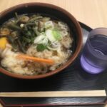 疲れを癒すそばつゆに生たまご、山菜、そして名物の天ぷらです。この天ぷらをあげることができるのは、長くから勤めてるお母さんのならではの技です。おいしかった!