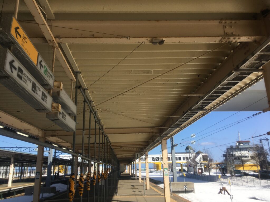 3〜6番線は奥羽本線と津軽線です。ホームにはもうなくなった津軽海峡線のスーパー白鳥のりば案内が残っています。やはり塞がれている連絡船乗り換え通路への階段が気になります。