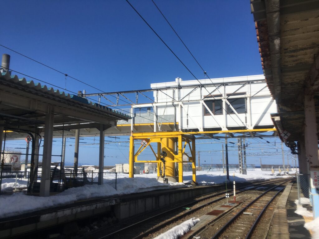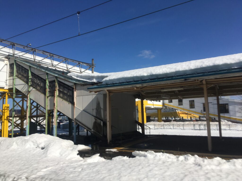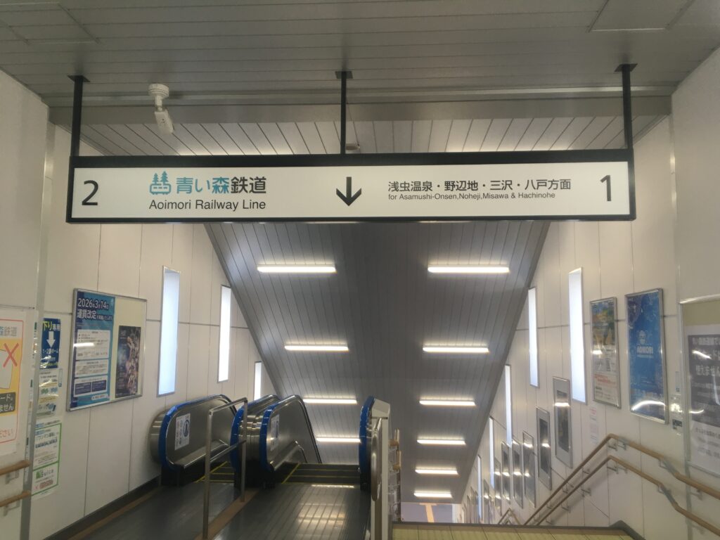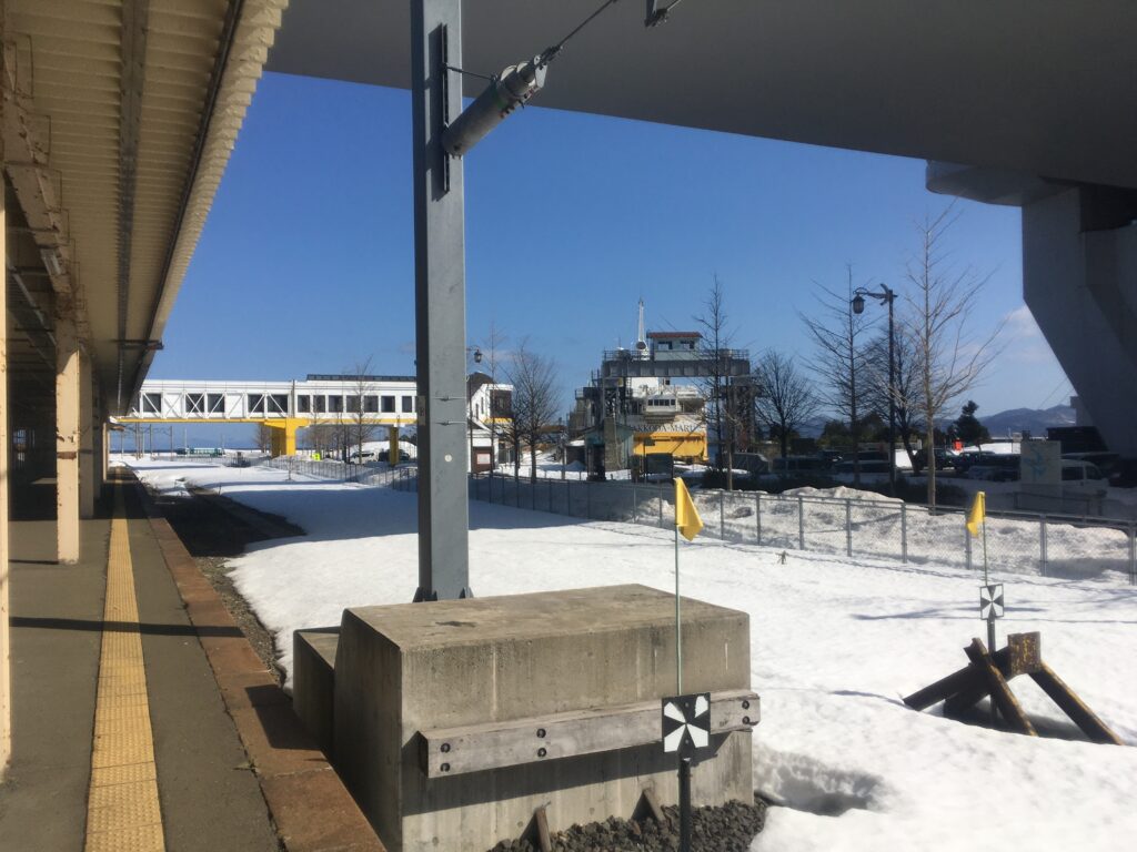 1・2番ホームは青い森鉄道線ですが、連絡船が見えるように塞がれているのは連絡船乗り換え通路への階段だったものです。