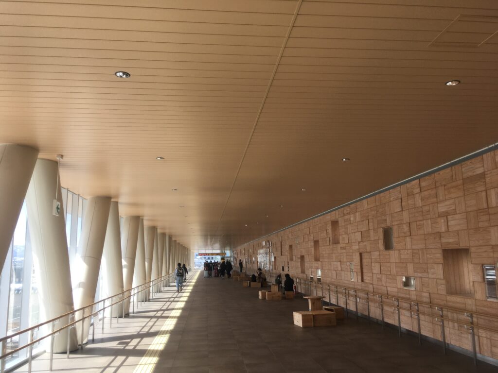 LOVINA3階部分と青森駅改札外コンコースを結ぶ通路により駅舎と駅ビルが建物内で直結されました。3階には青森ウォーターフロントを見渡せる「そらうみテラス」があります(当日は閉鎖されてましたが)。