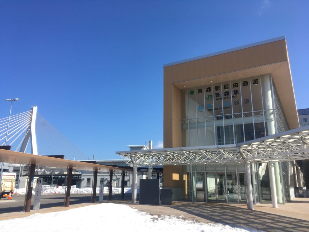 以前は青函連絡船と乗り継ぎ、北海道への玄関口だった青森駅も2024年現在の姿になりショッピングセンターの「&LOVINA」や「青森市民美術展示館」に「あおもり縄文ステーションじょもじょも」と立派になりました。
